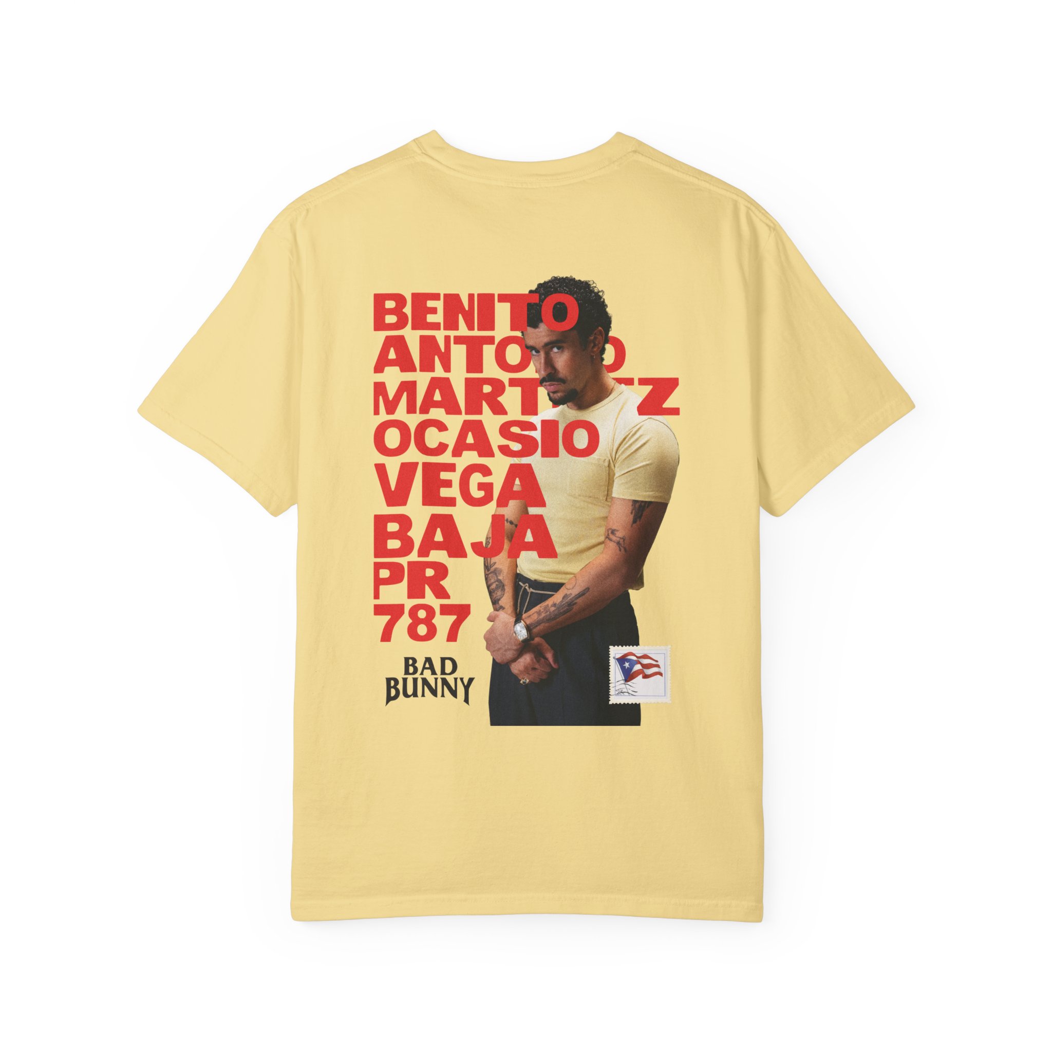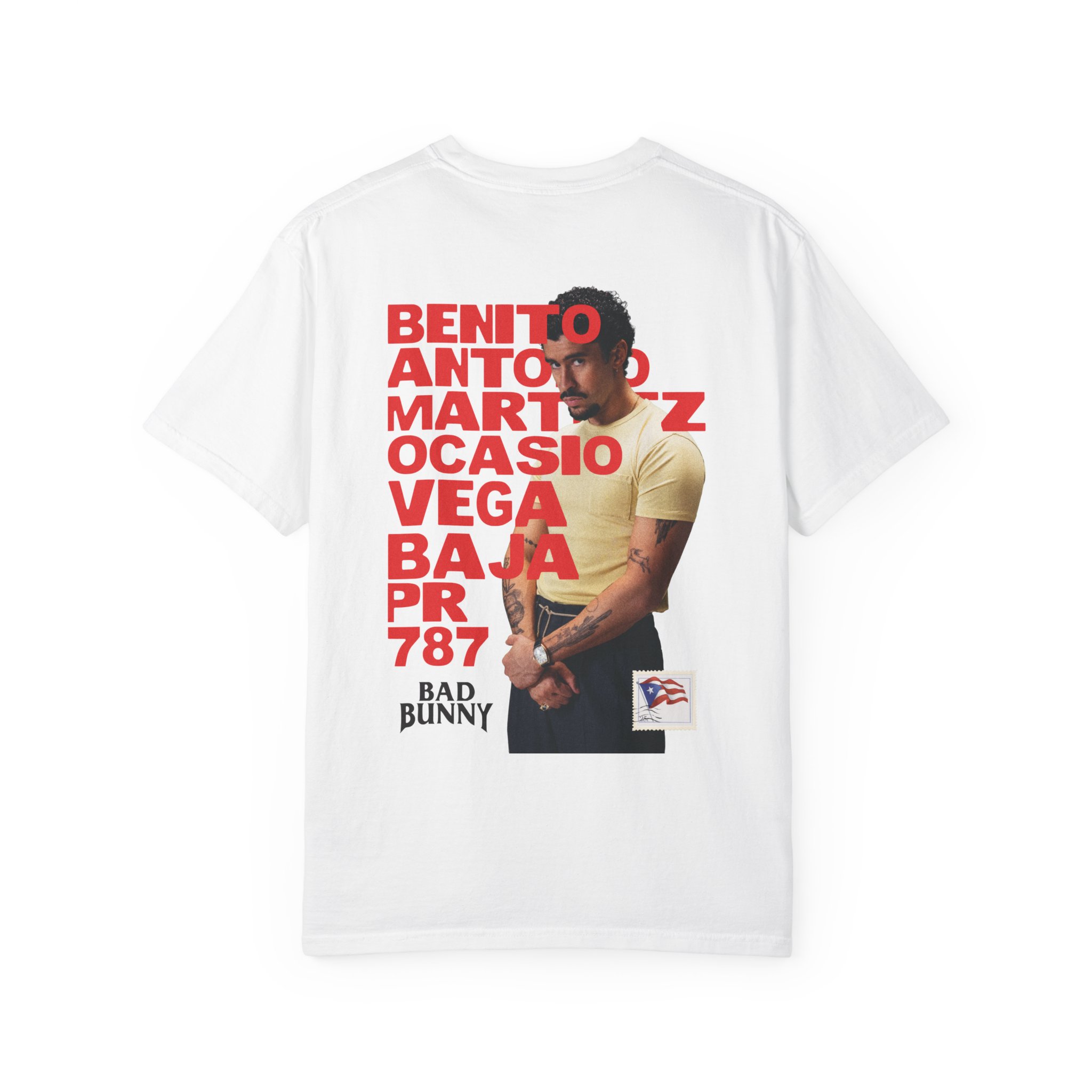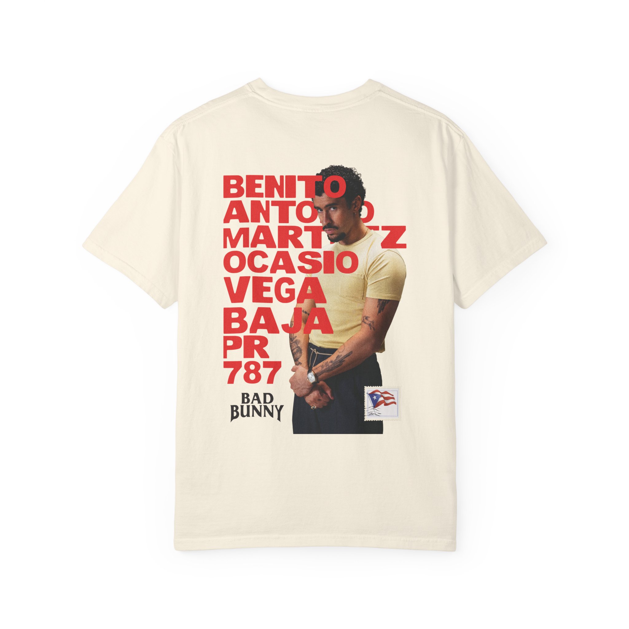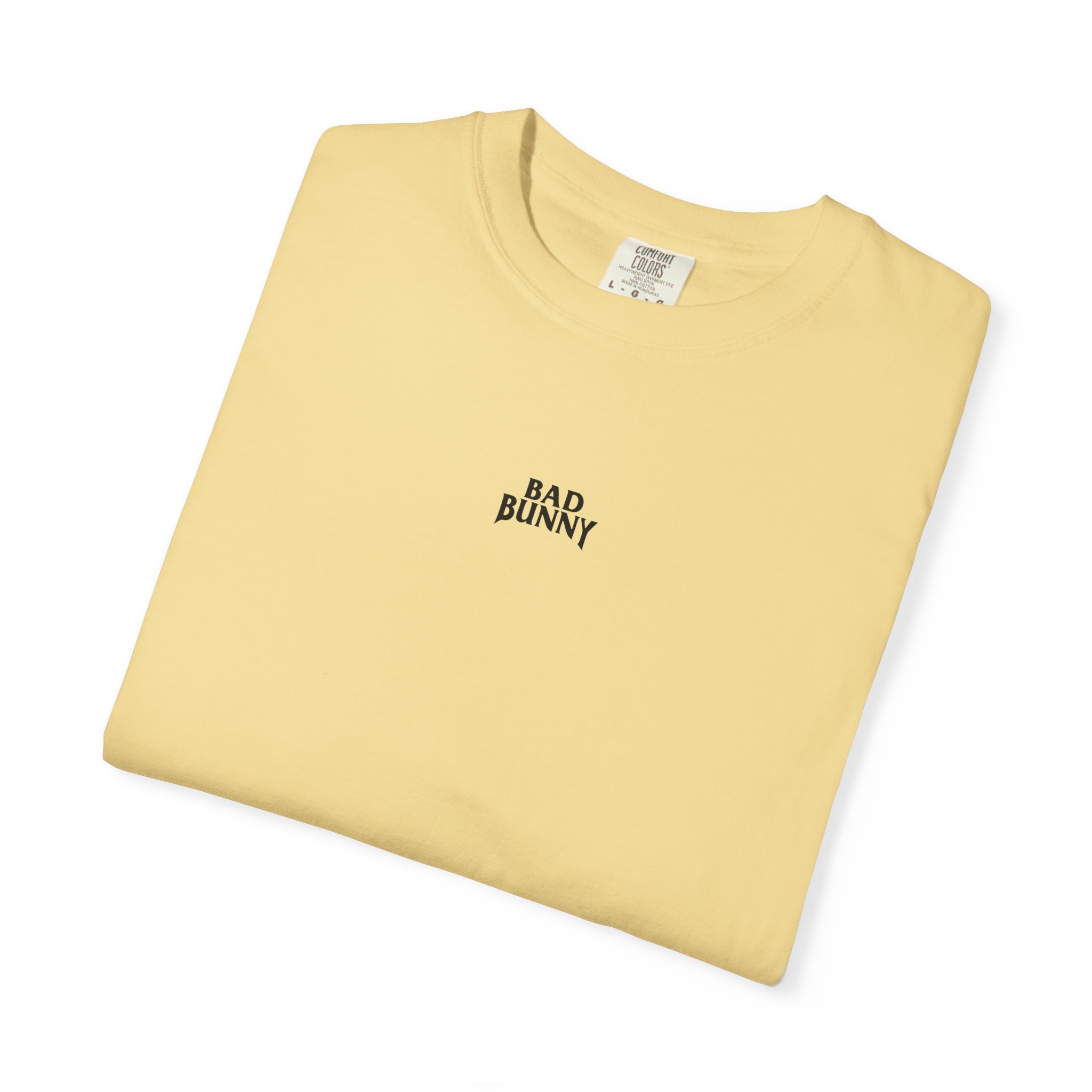 A heavyweight, garment-dyed tee that feels lived-in from the first wear. This relaxed-fit shirt wears like a favorite: softened color from post-construction dyeing, sturdy double-needle seams, and a tubular knit that creates a clean silhouette. The front carries a subtle, centered chest mark while the back features bold, high-contrast artwork layered with typographic blocks and a portrait motif — an urban, music-forward look that reads as both statement and staple. Sized from S to 2XL and finished with a sewn-in label, it’s built to last and age beautifully with every wash.