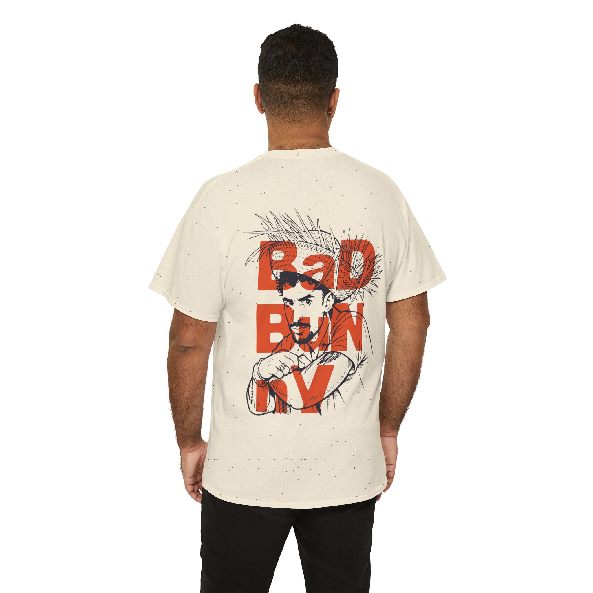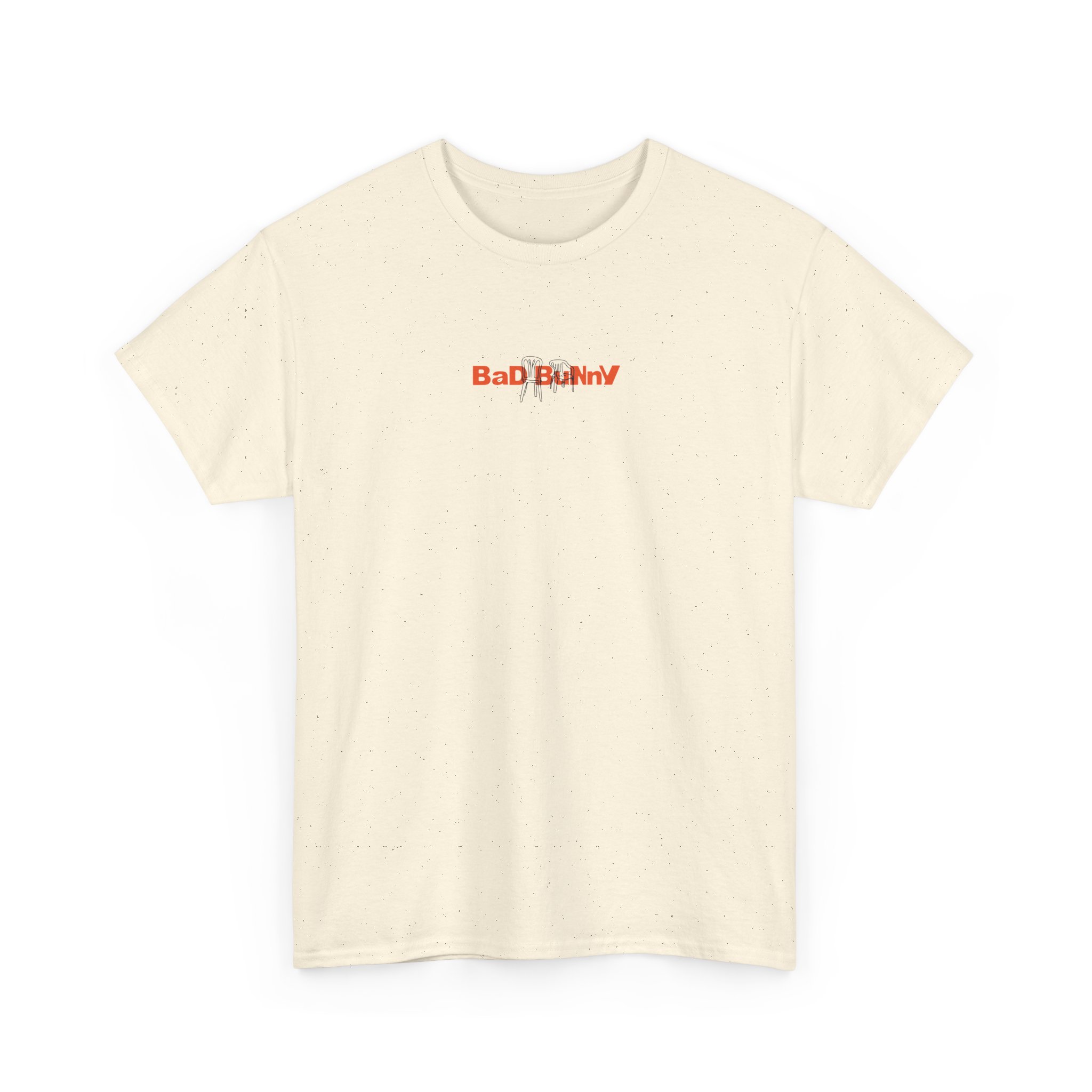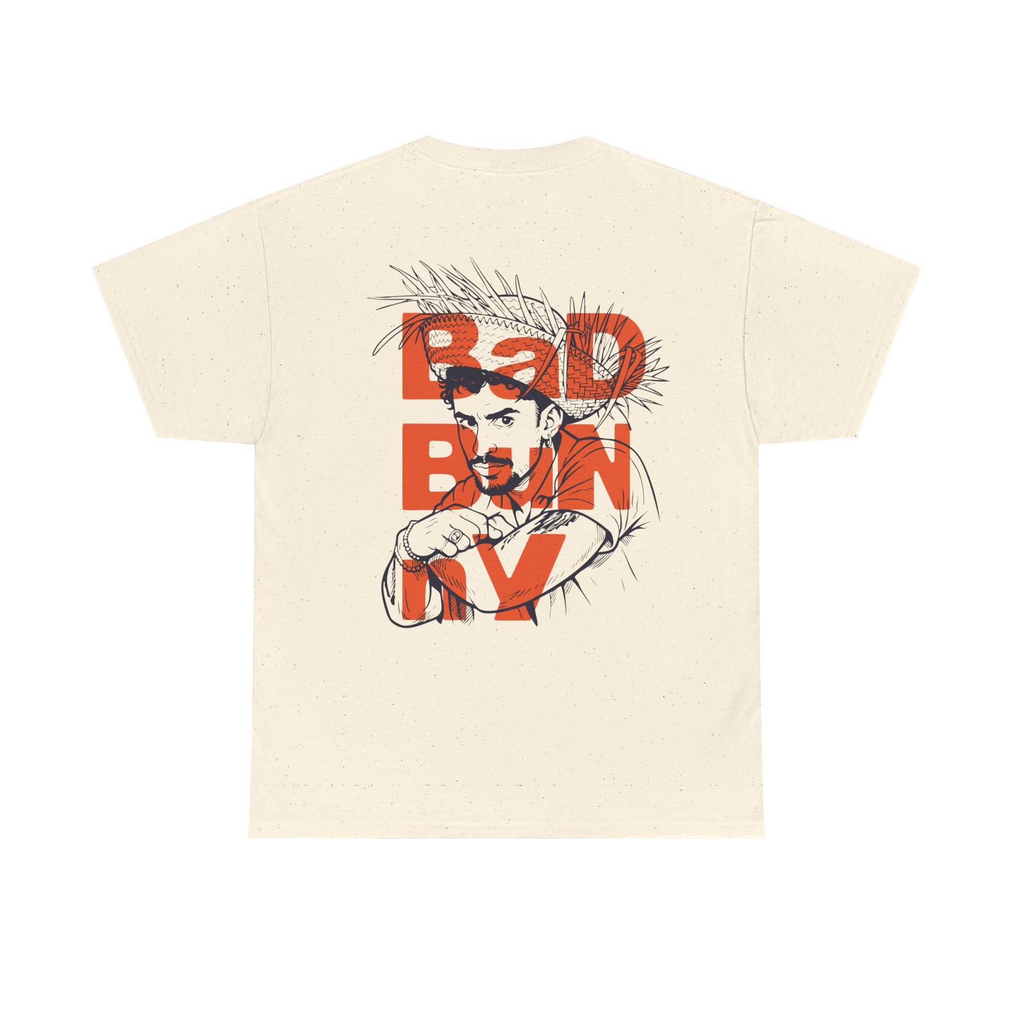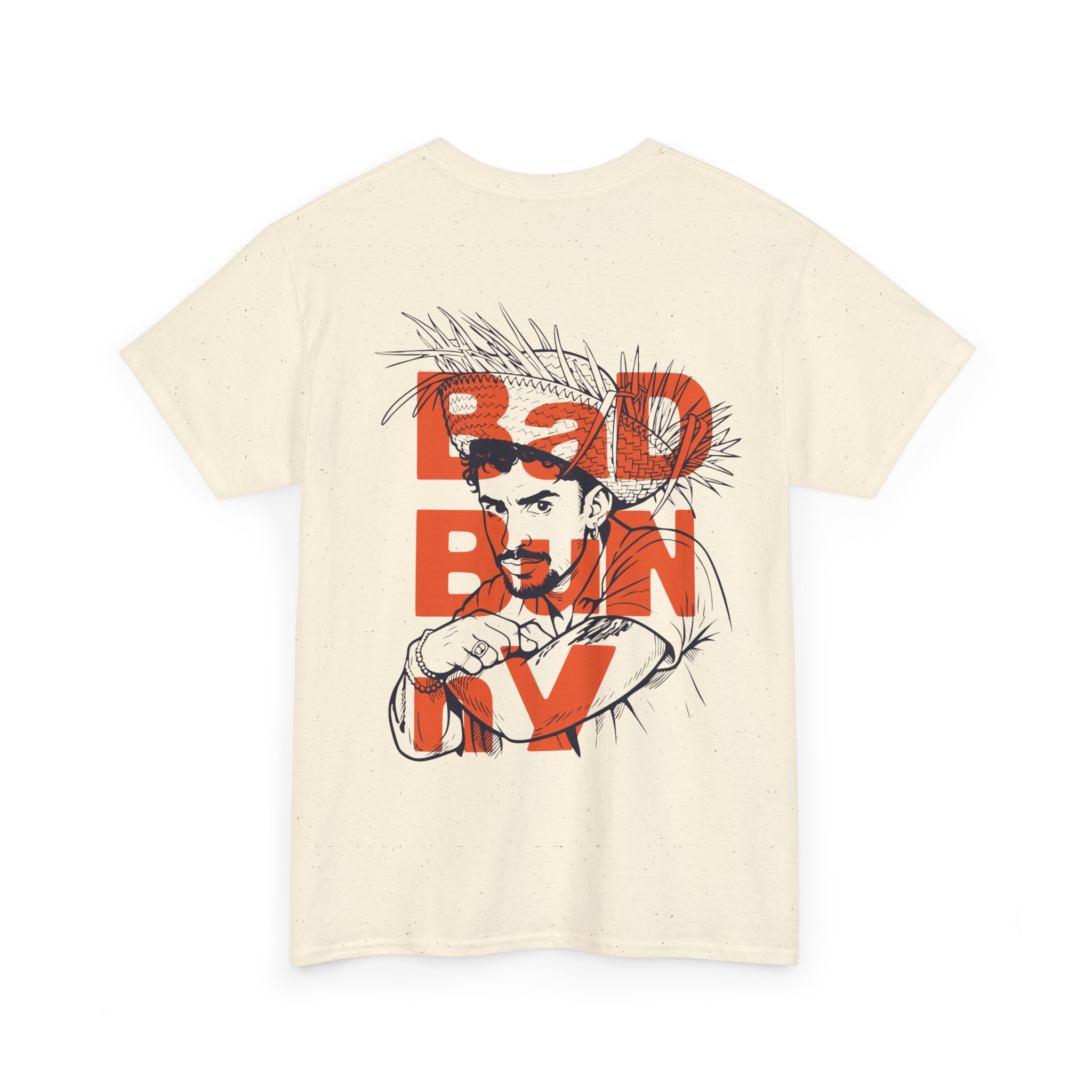 This soft, natural-flecked tee carries a quiet, confident edge. The front shows a small, distressed red logo that hints at something rebellious; the back opens into bold layered text and an ink-sketch portrait that reads like a page from an indie zine. Wear it when you want something that feels lived-in and expressive — a shirt that holds up to frequent wear while showing off art-forward attitude. The medium-weight cotton sits comfortably all day; the tubular knit and ribbed collar keep the silhouette clean and steady. Subtle black flecks in the Natural color add texture that complements the sketch-style print, so the shirt never feels flat. Let it be the shirt you reach for when you want your outfit to do the talking without shouting — for long coffee shop hangs, gallery nights, or low-key city wandering.